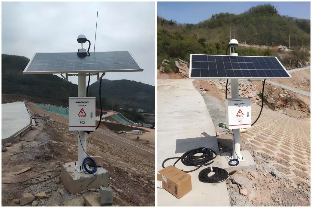 采用单北斗GNSS接收机可在一天内任意时刻、在地面上的任意一点都可以同时观测到4颗以上的卫星,可全天候连续进行GNSS定位测量,不受气候条件的影响。各监测点GNSS接收机与参考点接收机实时接收GNSS信号,并通过数据通讯网络实时发送到控制中心,控制中心服务器对GNSS数据处理,软件实时差分解算出各监测点三维坐标,数据分析软件获取各监测点实时三维坐标,并与初始坐标进行对比而获得该监测点变化量,同时分析软件根据事先设定的预警值而进行报警。